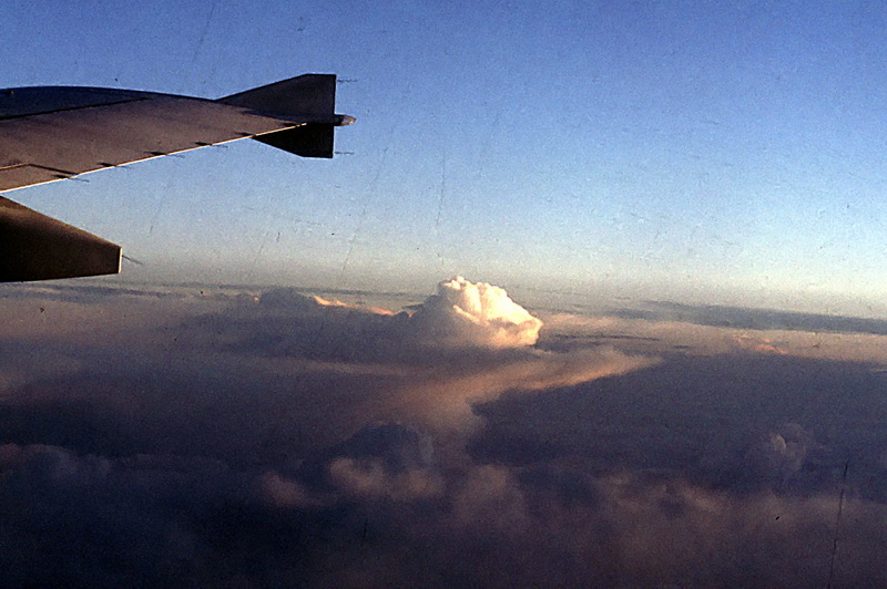 Los ging es bereits auf der Autobahn. Mit dem Auto meiner Eltern fuhr ich zum Franz-Josef-Strauß Flughafen. Kurz nach der Abzweigung von der Nürnberger Autobahn Richtung Freising sah ich am Beifahrerfenster Rauch aufsteigen. Sekunden später begann das Lenkrad ordentlich zu rütteln und ich bremste den Wagen langsam ab. Auf dem Seitenstreifen zu stehen gekommen, mußten wir feststellen, daß sich der Gummi des rechten Vorderrades aufgelöst hatte. Eigentlich war nur noch die Lauffläche und ein paar Drähte übrig. Mutter wurde nervös, das Flugzeug wartet ja nicht. Aber nach 10 Minuten war der Reifen gewechselt und wir kamen gut eineinhalb Stunden vor Abflug am Flughafen an.