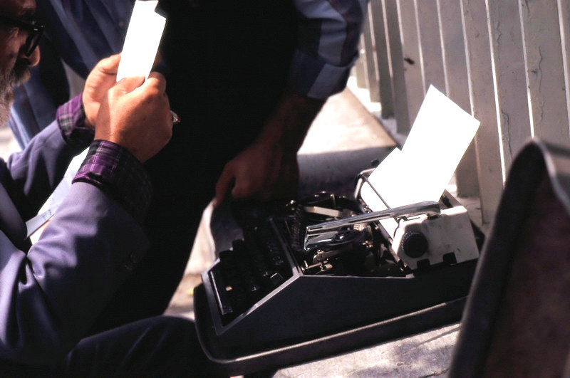Auf dem Weg zum Teppich Museum kamen wir an einer großen Behörde vorbei. Dort saßen auf der Gartenmauer Männer mit Schreibmaschinen, die ihre Dienste anboten. Im Iran gibt es immernoch Analphabethen und Menschen, die sich keine Schreibmaschine leisten können, bzw. sich bei der Formulierung von Behördenschreiben schwer tun (wie bei uns auch) und die nutzen gerne die angebotenen Schreibdienste.