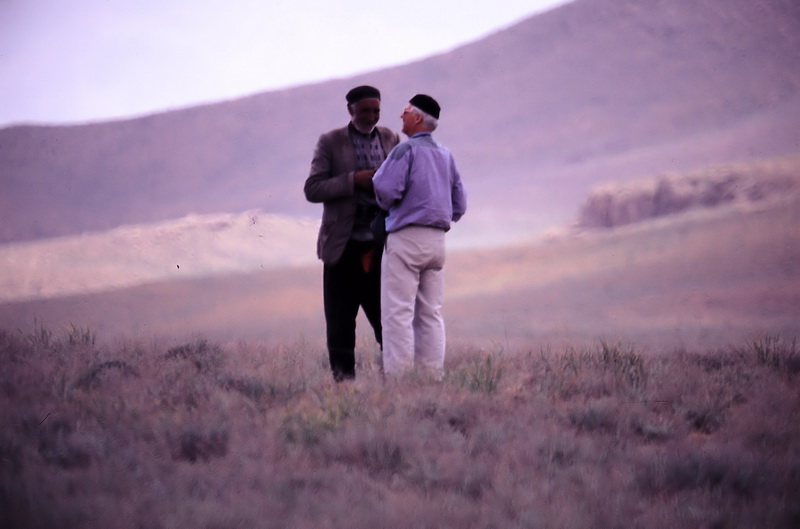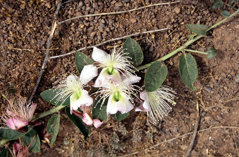 Bei einem Fotostop sahen wir die erste große Schafherde und ich war noch mit dem Fotographieren von Wüstenblumen beschäftigt, als mich Ernst rief. Er hatte mit dem Hirten ein Gespräch begonnen, nicht verbal, sondern mit Gesten, Händen und Füßen. Er fand heraus, daß der Schäfer eine Zigarette wollte und da Ernst nicht raucht, mußte ich eine spendieren. Und so stand er dann rauchend und freundlich lächelnd neben dem Bus und winkte, als wir weiterfuhren.