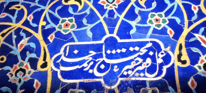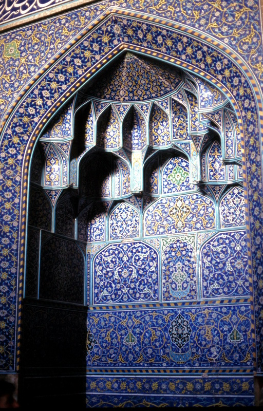 Mosaike gehören zu den schönsten im Iran. Das besondere an der Moschee ist der um 45° versetzte Eingang mit den