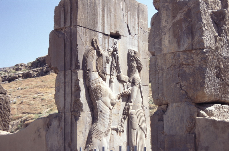 Interessant sind die Felsreliefs der Sassaniden. Eines stellt die Krönung von Ardeschir I. (224 - 241 n. Chr.) dar (Foto). Auf einem Pferd sitzend empfängt er von Ahura Masda den Rind des Lebens, das Zeichen der Königswürde. Auf einem anderen Felsbild ist Shapur I. (241 - 272 n. Chr) zu sehen, vor dem der römische Kaiser Valerian kniet, den er gefangen genommen hatte. Es war die erste Gefangennahme eines römischen Kaisers in der Geschichte. Gegenüber der Felswand steht ein achämenidischer Quaderbau, die Kaaba-e Zardoscht. Lange Zeit war nicht klar, welchem Zweck der Bau diente, man nimmt aber an, daß es sich um einen Feuertempel der Göttin Anahita handelt.
